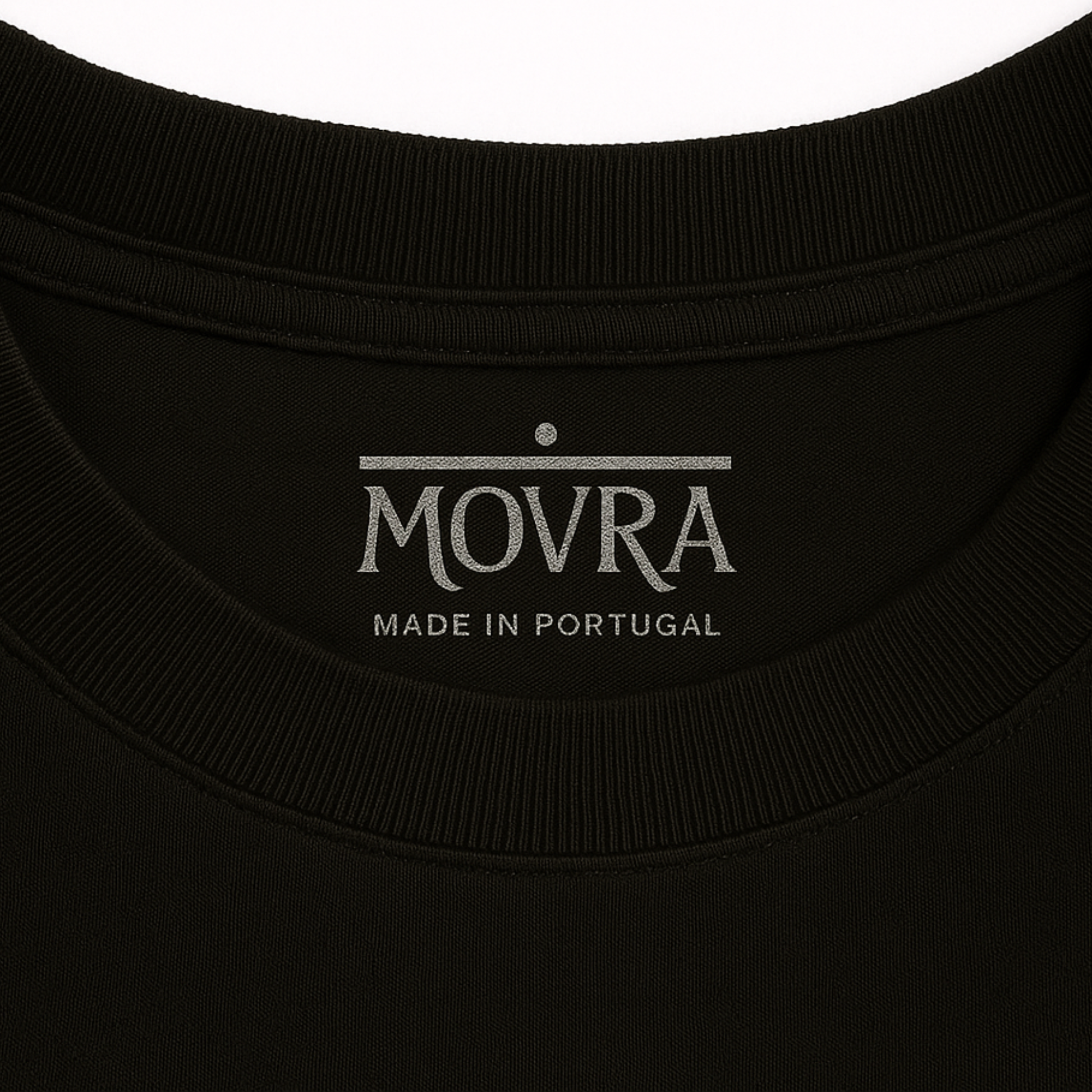 A small black MOVRA logo sits centred on the chest, a quiet mark of identity. Ethically made in Portugal using small-batch production that values sustainability and craftsmanship.